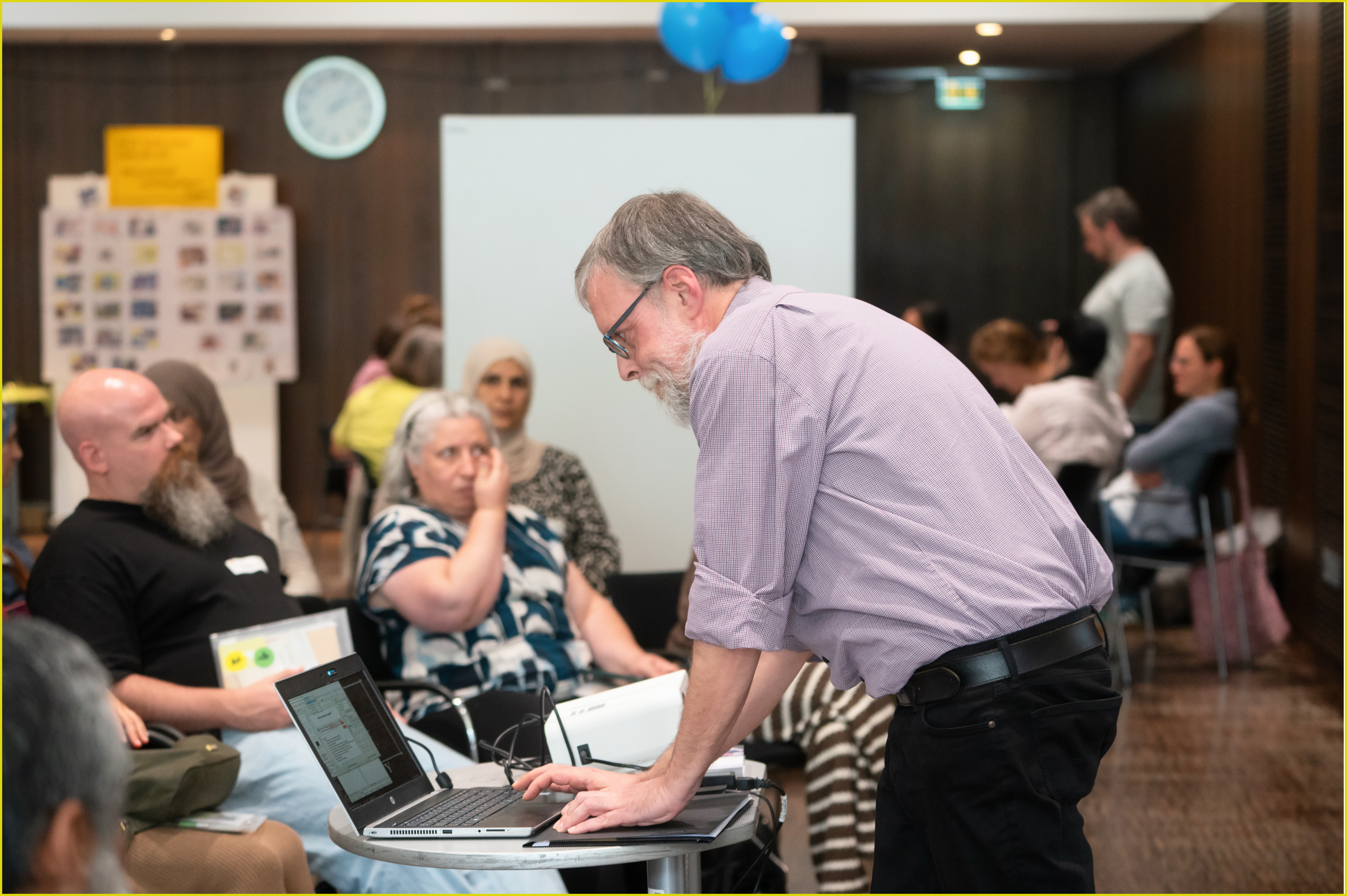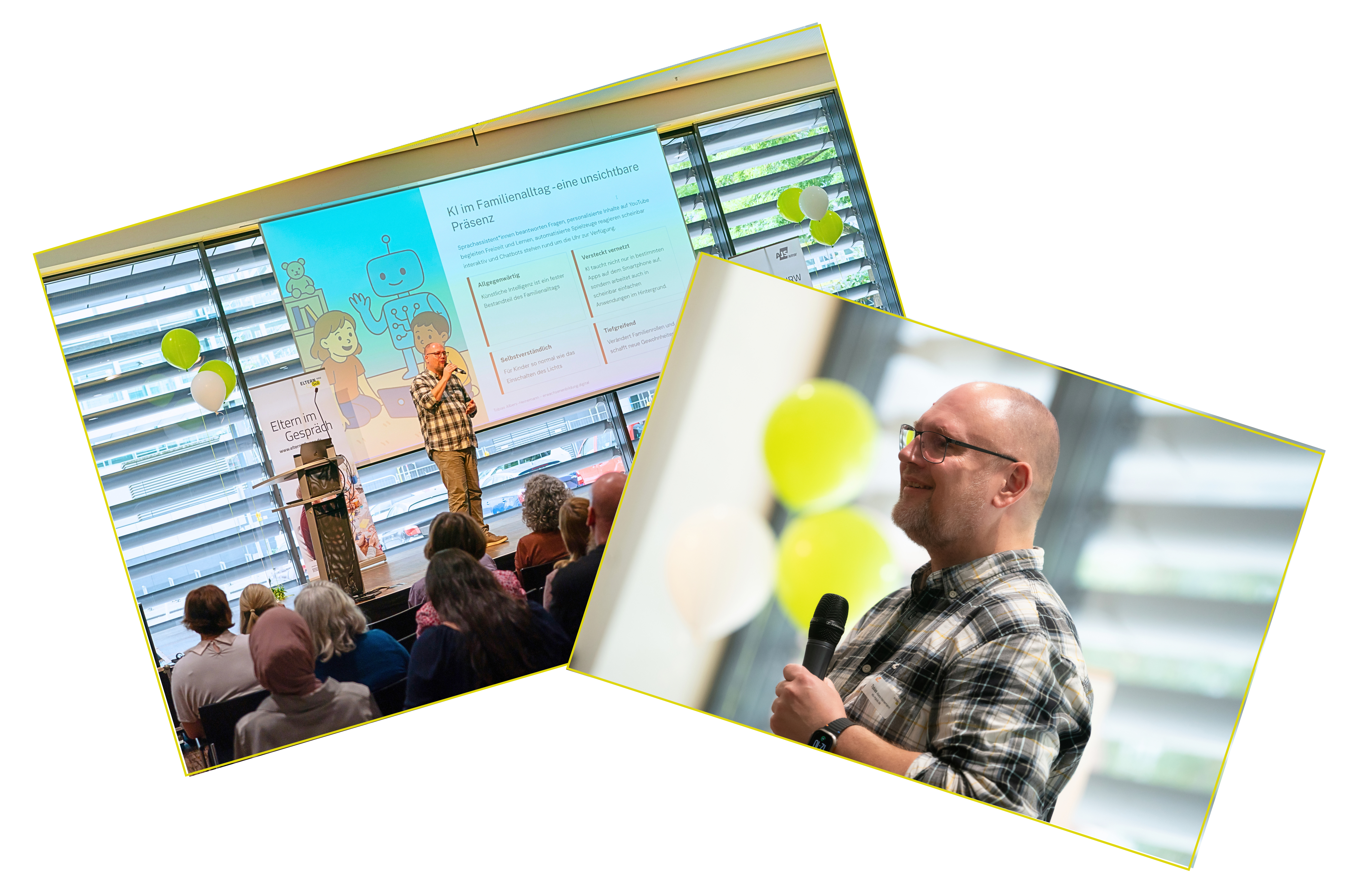 Es gab auch praktische Angebote. Dort konnten die Teilnehmenden KI-Werkzeuge testen und gemeinsam Neues lernen. Das Netzwerk von Elterntalk NRW wurde dabei von Expert*innen aus der Medienpädagogik unterstützt. Mit dabei waren Horst Pohlmann von der Akademie der kulturellen Bildung, Markus Sindermann von der Fachstelle für Jugendmedienkultur NRW und Conny Crumbach vom jfc Medienzentrum.