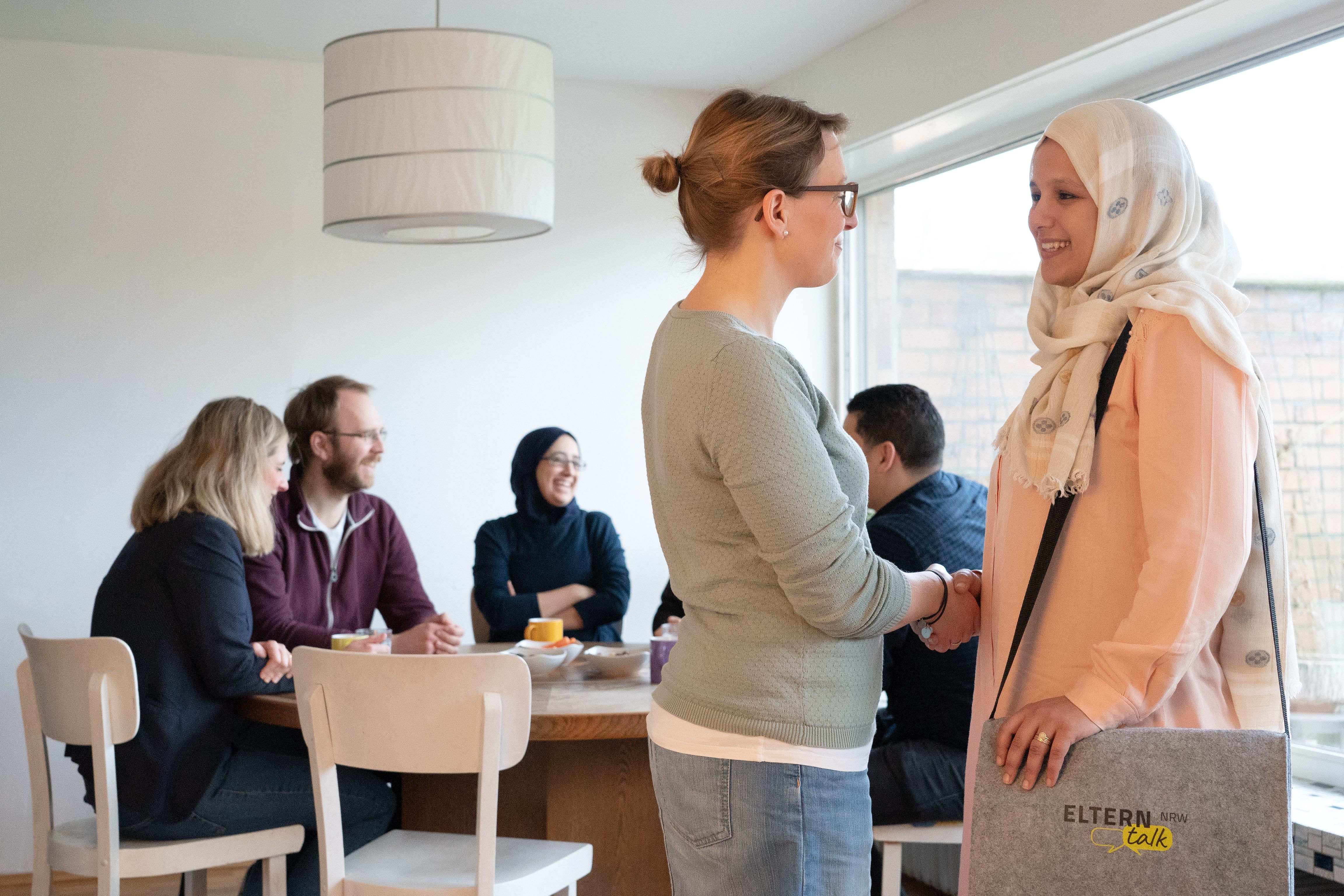 Eltern treffen sich in einer kleinen Gruppe zum Austausch über ihren Alltag mit Kindern. In den Gesprächsrunden können sie mit anderen Eltern über Erziehungsfragen sprechen. Zu den Elterntalk-Themen gehören Gesund aufwachsen, Pubertät und Medien (Smartphone, Digitale Spiele, Fernsehen & Streaming).
