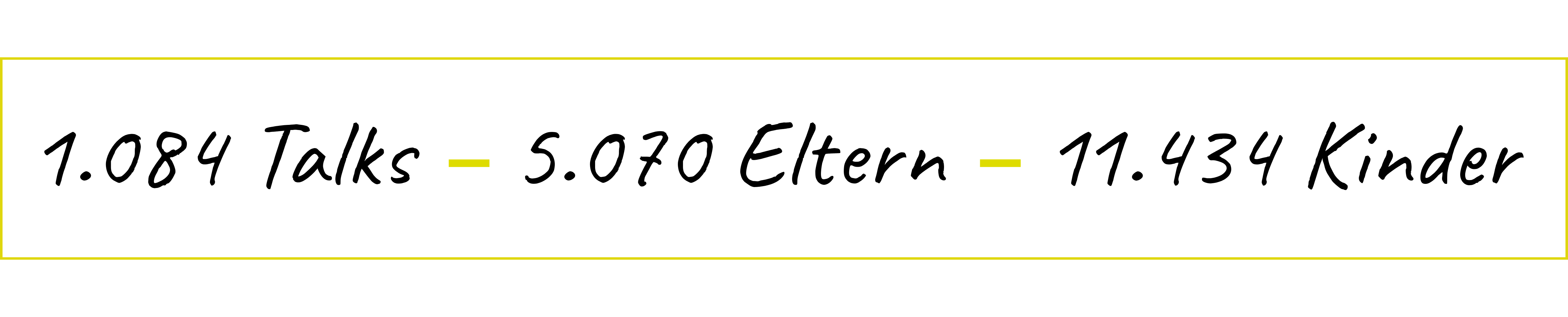 Elterntalk NRW hat sich im Jahr 2024 sehr erfolgreich entwickelt. Es gab 1.084 Gesprächsrunden. Das sind 45 Prozent mehr Treffen als im Vorjahr. 5.070 Eltern nahmen an den Gesprächsrunden teil. Das ist ein Zuwachs von mehr als 50 Prozent. Das Angebot trifft also auf große Resonanz bei Eltern. Der Schneeballeffekt (immer mehr Menschen erfahren davon) des Peer-to-Peer-Ansatzes (Austausch unter Gleichgestellten) hat sich vielerorts gezeigt. Viele Menschen erzählen anderen von Elterntalk.